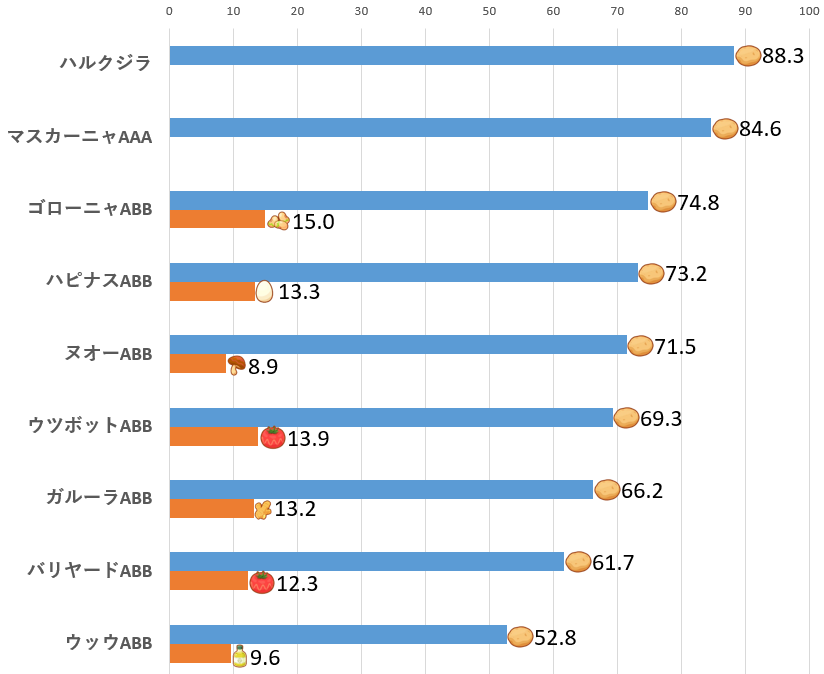 また、「ABB」(第2食材からマメミート)も個体値次第で活躍できますが、基本的には他の食材とくいのポケモンを厳選するのがおすすめです。