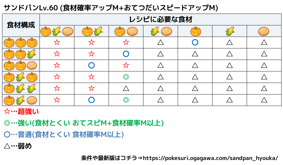 ここでは、サンドパンが食材とくいポケモンより優れる可能性がある状況について考察していきます。